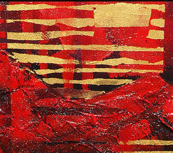 �Her Latest collection of abstract paintings is rich with texture achieved through the use of mixed mediums. Strands of gold-like threads and pieces of metal seem woven into her artwork. American patrons who enjoy her original interpretations have already recognized the evocative and almost sensual glow to her paintings.